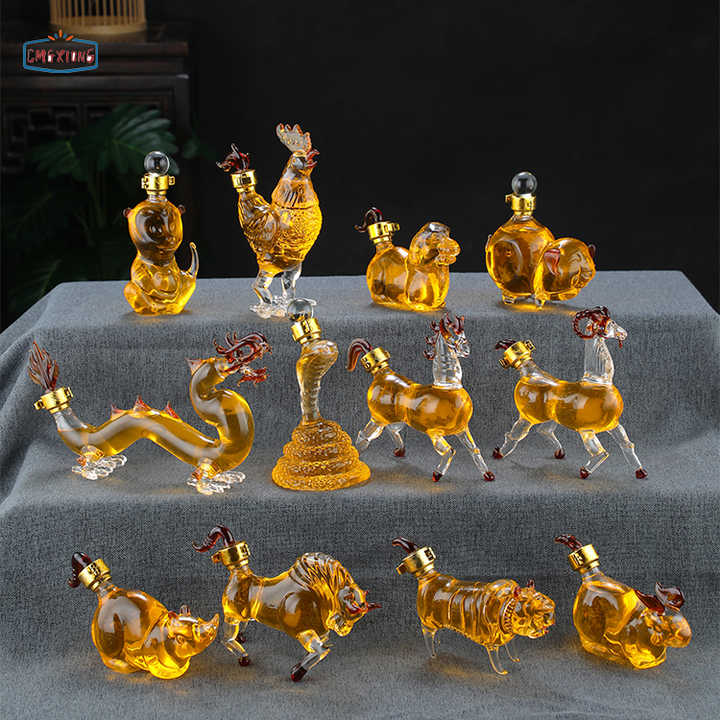 Vỏ chai rượu 12 con giáp ngoại nhập, làm thủ công theo hình con vật 12 con giáp có chất lượng thủy tinh trong suốt. Lột tả 100% màu rượu hảo hạng của bạn. Bạn ngắm rượu và các con giáp một cách thích thú nhất.